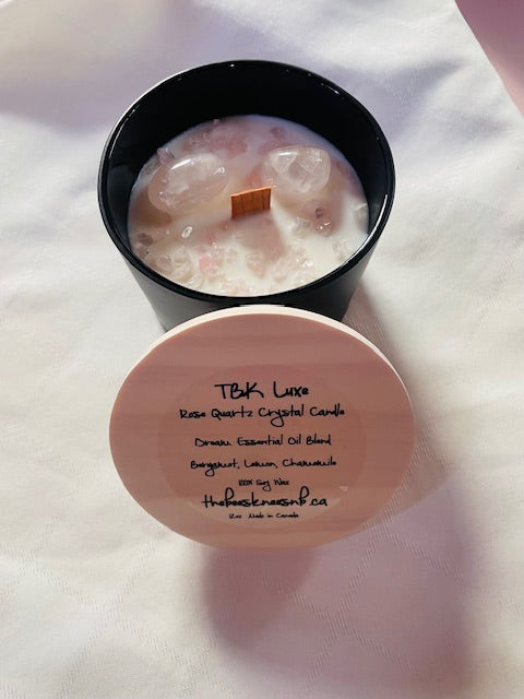 TBK LUXE Collection Rose Quartz Essential Oil Semi Precious Stone Candle