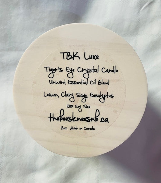 TBK LUXE Tiger's Eye Essential Oil Semi Precious Stone Candle