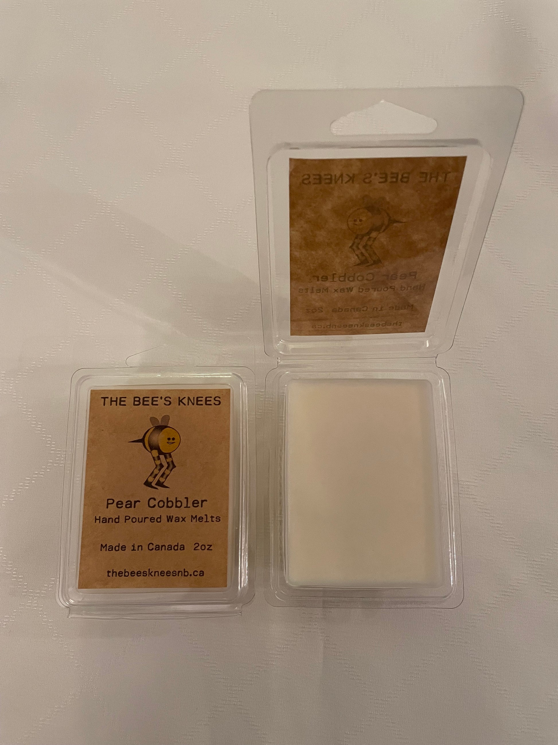 Pear Cobbler Wax Melts are hand poured strong scented wax melts that will give you the same luxury scented room that you would normally get from burning a candle without the flame !